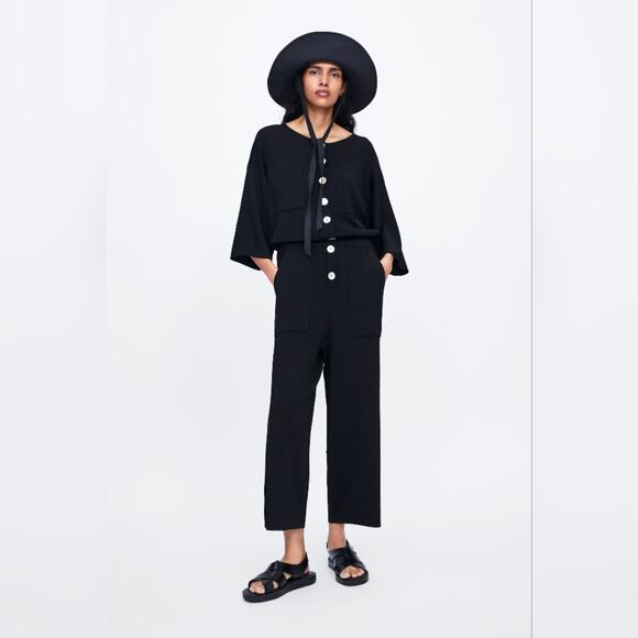 NWT Zara Black Knit Button Jumpsuit Size Small
