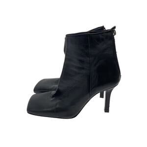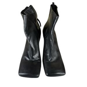 NWT Zara Black Leather Ankle Boots Square Toe Stiletto Heel EU 41 US 10