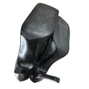 black ankle boots, leather booties, square toe boots, stiletto heel boots, minimalist shoes, modern footwear, evening boots, city style, sleek silhouette, womens leather boots