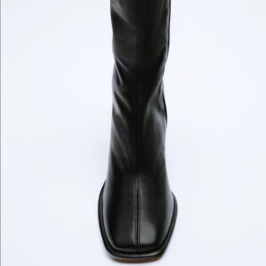 NWT. Zara Black Leather High-Hell Ankle Boots. Size 10. 6,5