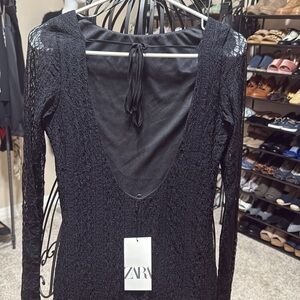 NWT Zara Black Long Sleeve Low Back Lace Dress