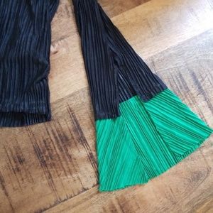 New with Tags Zara black pleated blouse with contrasting green cuffs. Cuffs flare and split at wrist.