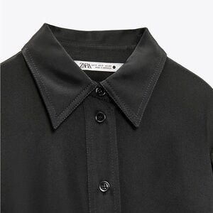 NWT. Zara Black Satin Effect Shirt Midi Dress with Belt. Size S.