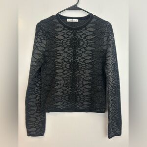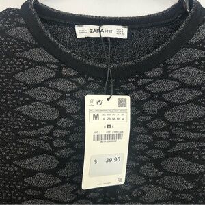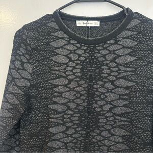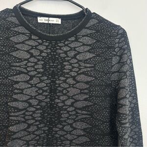 NWT Zara Black & Silver Snakeskin/Animal Print Long Sleeve Knitwear Top Size Med