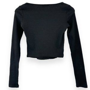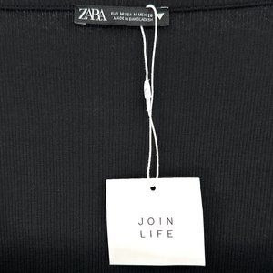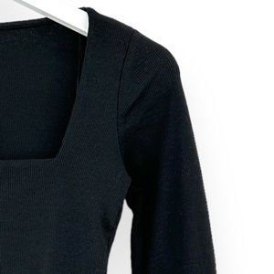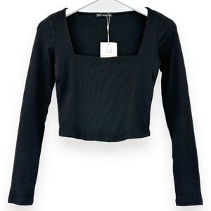 NWT Zara Black Square Neckline Long Sleeve Ribbed Lightweight Cotton Sweater Top