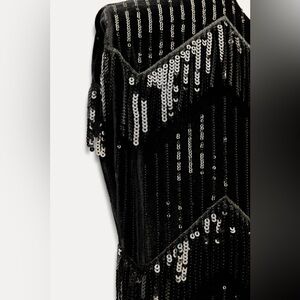 NWT. Zara Black Velvet Fringe and Sequin Mini Dress. Size M.