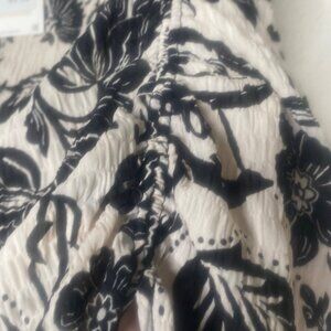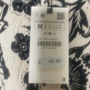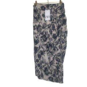 NWT Zara Black & White Floral Midi Skirt Womens Size M Ruched Lightweight