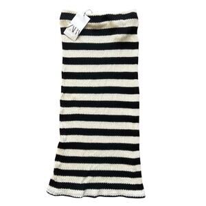 NWT Zara Black and White Striped Knit Midi Skirt Size Small
