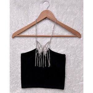 NWT Zara Black Limitless Contour Collection Seamless Jewel Butterfly Halter Top