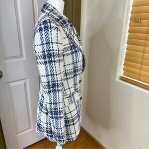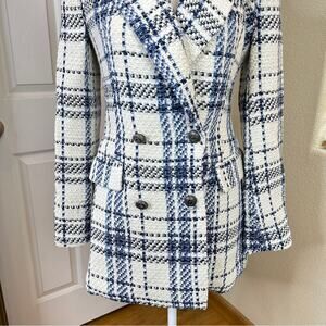 NWT Zara Blogger Blue White Double Breasted Textured Blazer Jacket.
