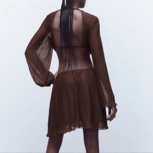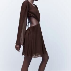 NWT Zara Blogger Cut Out Pleated Chocolate Brown Mini Dress.