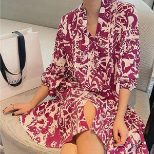 As seen on your favorite fashion bloggers! This NWT Zara V-neck Mini Dress features a flattering button-down front, ruffled hem, and a playful allover print—perfect for summer events, vacations, and casual chic days.