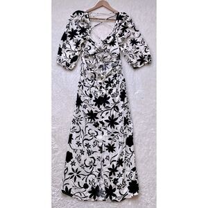 NWT Zara Blogger’s Favorite Linen Floral Gathered Short Puff Sleeves Midi Dress