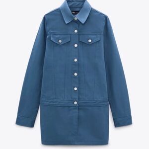NWT Zara Blue Denim button down Mini Dress Sz S