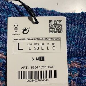 NWT. Zara Blue Metallic Thread Knit Shorts with front pockets, elastic waistband. Size S, L. Ref. 6254/027. Size S - Waist 13" flat, rise 14", inseam 3". Size L - Waist 14,5" flat, rise 14", inseam 3". 1003.