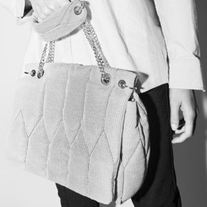 NWT. Zara Blue Pinstripe Quilted Shoulder Bag with silver chain and hardware, lined interior, interior pocket, magnetic closure. 14" X 11" X 3". Ref. 6655/710.
