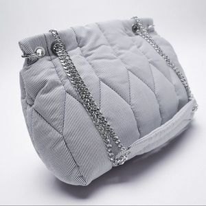 NWT. Zara Blue Pinstripe Quilted Shoulder Bag.