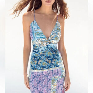 NWT Zara Blue Printed Midi Dress with Knot Women's