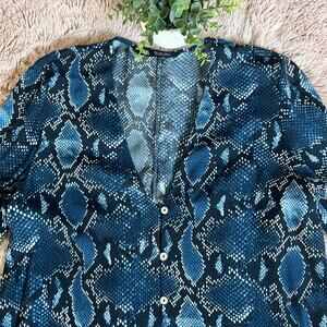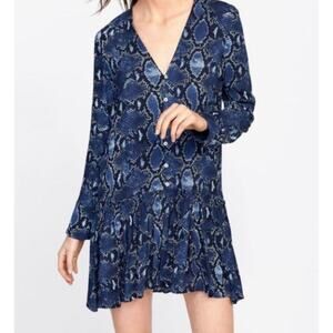 Zara Blue Snakeskin Print Long Sleeve Button Front Dress