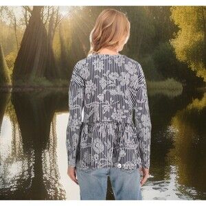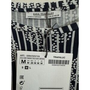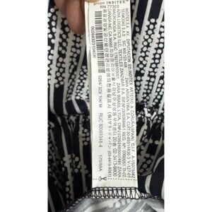 This NWT Zara Blue White Stripe Floral Oversized Peplum Pleat Frill Hem Top in size M is a stylish and versatile addition to any woman's wardrobe. Made of comfortable cotton material, this top features a relaxed fit, long sleeves, and a colorful striped pattern with a blue character. The pleated accents and peplum design add a trendy touch, making it perfect for the seasons of summer, fall, and spring. Ideal for casual or fashionable looks, this top can be effortlessly dressed up or down for any occasion.