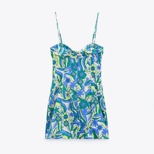 🌹NWT. Zara Blue/Green Floral Print Cut-Out Mini Dress. Size XL.