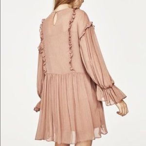 NWT Zara Blush Ruffled Shiny Frilled Mini Dress