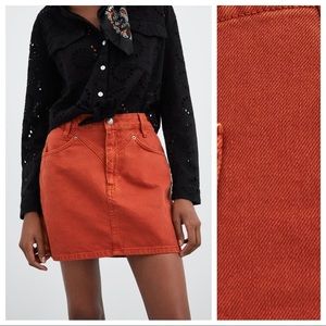 NWT. Zara Brick Denim Mini Skirt. Size L.