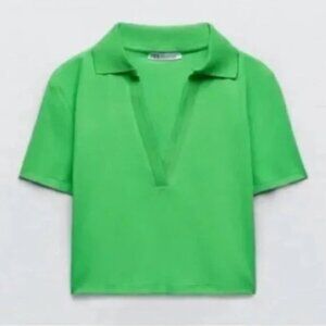 NWT Zara Bright Green Collared Ribbed Crop Top