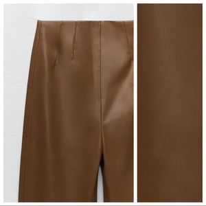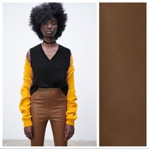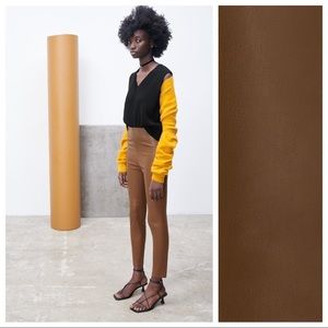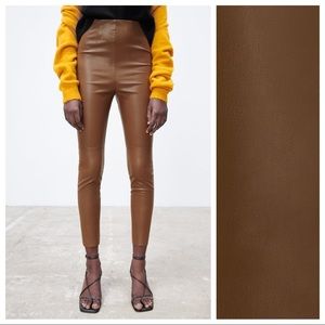 NWT. Zara Brown Faux Leather High-Waisted Leggings. Size M.