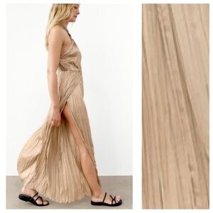 NWT. Zara BrownFaux Leather Francoise Full Length Trousers. Size XS.
