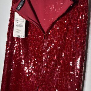 NWT Zara Burgundy Red Sequin Midi Skirt - size XS