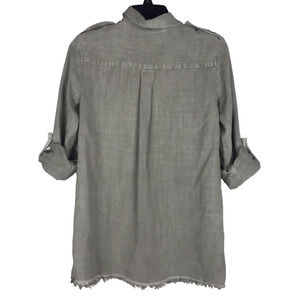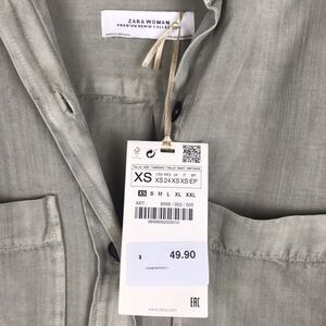 New With Tags Zara Button Up Shirt Long Sleeve Roll Tab Sleeves Collar Chambray Gray Denim Raw Hem Size XS