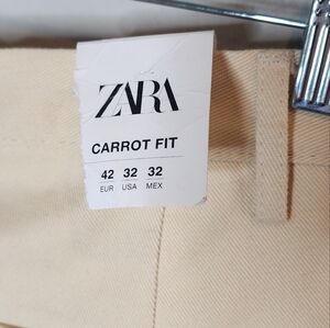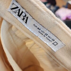 NWT Zara Carrot Fit Cream Yellow Pleated HR Jeans. Women's size 32 or 14.