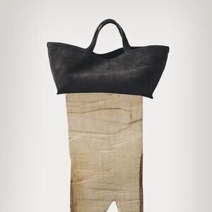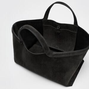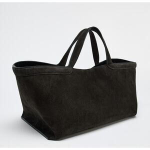 NWT Zara Charcoal Genuine Elongated Suede shopper bag tote row-coded