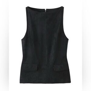 NWT Zara Classic Black Suede Tank Top Pockets Small