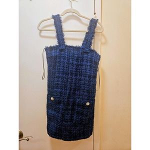 NWT Zara Cobalt Blue Textured Tweed Pinafore Mini Dress, Women's Extra Small XS