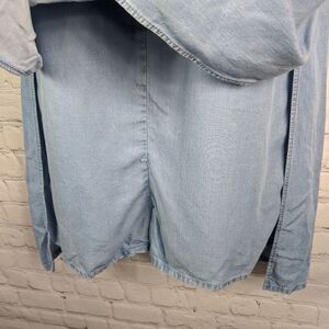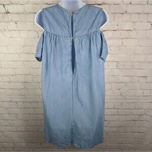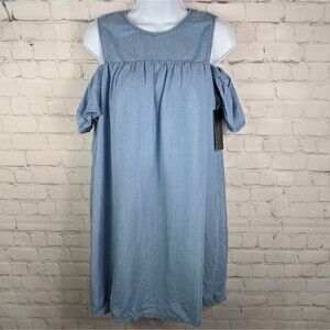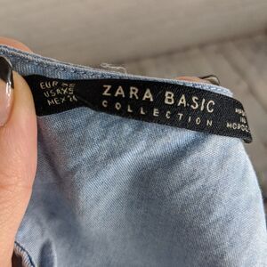 NWT Zara size XS chambray blue cold ruffle shoulder jumper dress. Built in shorts with the illusion of a dress. Cold shoulder cut outs. Key hole button closure. Small hole on the back of the jumper near the right shoulder (see photos).