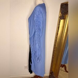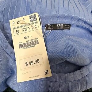 NWT Zara Collection Blue Black Ribbed Cinched Gathered Dress Size Small $49.90