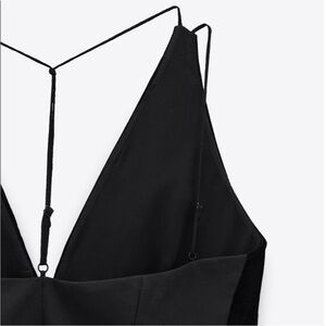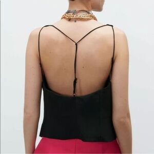 Sleeveless vest with V-neckline and thin, crossed, adjustable straps at the back. Various tone-on-tone fabrics. Closure at the front with a covered button…