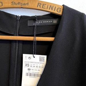 NWT Zara Contrasting Mini Black Dress V-neck with Puff Sleeves XS
