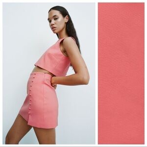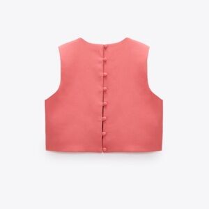 NWT. Zara Coral Crop Top with Buttons with round neckline, sleeveless, back closure with lined buttons. Size L. Ref. 7385/006. Pit to pit 16" flat, shoulders 11,5", length 14,5". DO4.