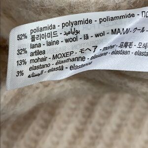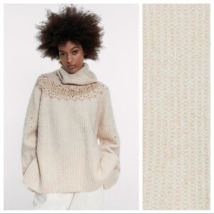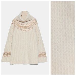 NWT. Zara Cream Mohair and Wool Blend Knit Turtleneck Sweater with long sleeves, sequin embroidery on top on sweater and sleeves. Size S. Ref. 3653/113. Pit to pit 23" flat, shoulders 14", sleeves 25", length 29". 1030.