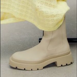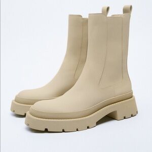 NWT. Zara Cream Rubber Ankle Boots. Size 10.