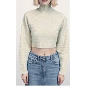 NWT Zara Cream Wool Blend Open Back Knit Cropped Sweater. Size S. $70