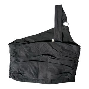 NWT Zara Crop Top One Shoulder Linen Blend Black Ruched Size Large Zip