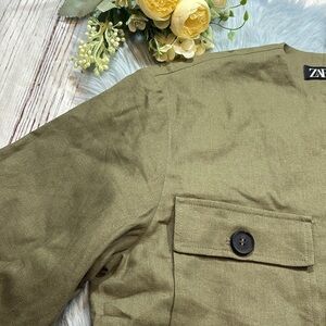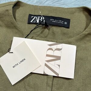 New with tags Zara Cropped Linen Blend Jacket with Contrast Cuffs