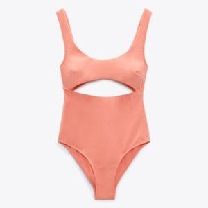 NWT Zara Cut Out One-Piece Swimsuit in Peach