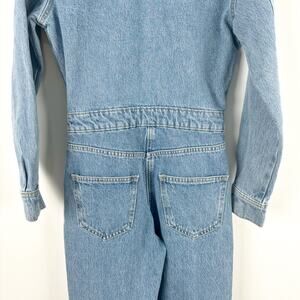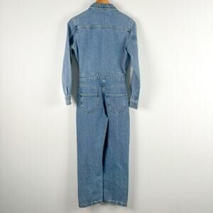 Long sleeve denim jean jumpsuit, exposed button fly, blogger fav!