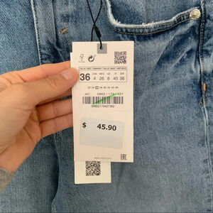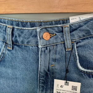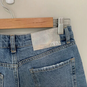 NWT Zara Distressed Knees Rigid Denim Light Wash Mom Jean Size 4