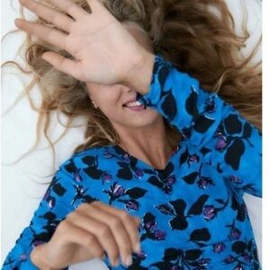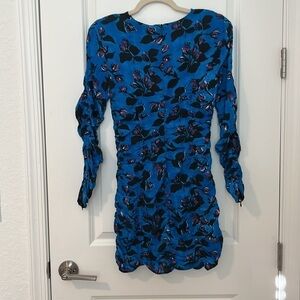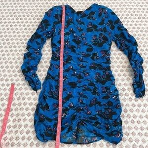 NWT Zara Draped Ruched Floral Print Long Sleeve Mini Bodycon Dress Size XS Blue